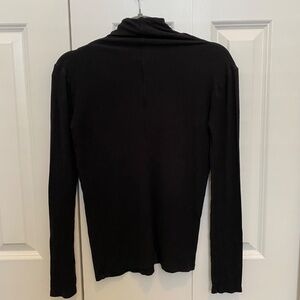 VINCE LONG SLEEVED, MOCK NECK, RIBBED BLACK SHIRT. Loose mock neck. Seem down the back.