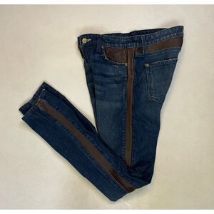 VINCE Leather Trimmed Denim Jeans Women Size 29 Blue