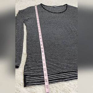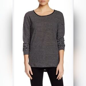 VINCE Linen Black & White Striped Long Sleeve Oversized Tee Womens Size Small