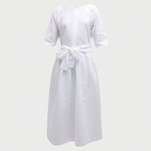 VINCE Linen-Cotton Belted Boat Neck Dress in Optic White Size Medium M