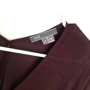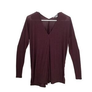 VINCE Long Sleeve Shirt Double V-Neck in Plum Purple Burgundy Rayon Size S