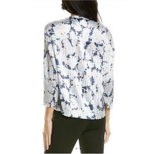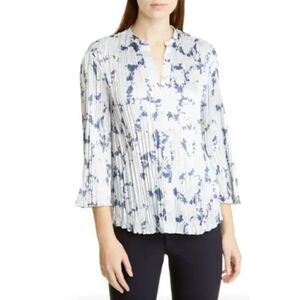 VINCE Lotus Pleated Floral Crinkle Blue Pink Blouse NWT Size 1X