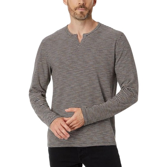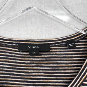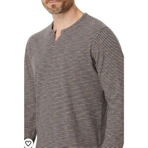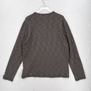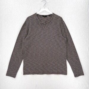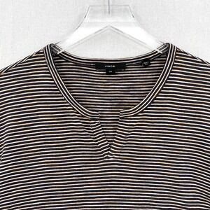 VINCE Mens Long Sleeve Shirt Large White Nightshade Slub Stripes Split Neck NWOT