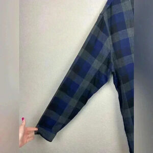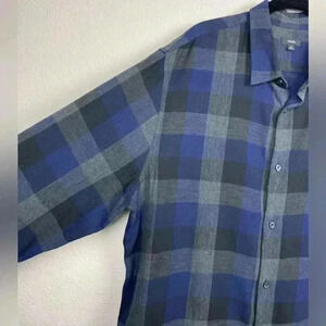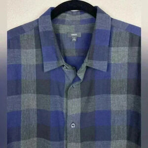 VINCE Men's XL Blue Grey Buffalo Check Button Front Collared Shirt Lightweight