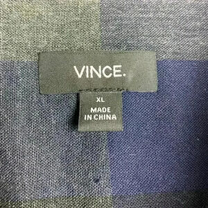 VINCE Men's XL Blue Grey Buffalo Check Button Front Collared Shirt Lightweight Breathable Cotton Classic Minimalist