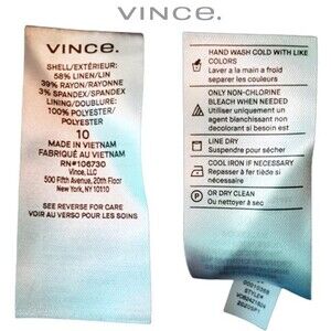 BODY: 58% Linen/39% Rayon/3% Spandex; and, LINING: 100% Polyester