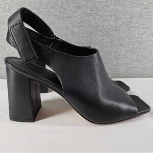 Step into sleek sophistication with the Vince Niara slingback sandal in black. Crafted from premium leather, this peep-toe heel features a square toe and a sturdy 3.25" block heel for modern elegance and all-day comfort. The adjustable slingback strap ensures a secure fit, and makes it perfect for both office wear and evening outings.