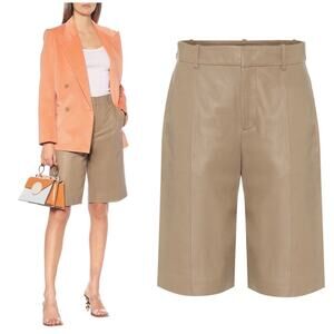 VINCE -NWT- $895 High-rise Leather Bermuda Shorts Tan Neutral | 6