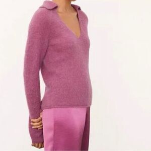 VINCE NWT Brushed V-Neck Polo Alpaca & Wool-Blend Sweater Size Medium