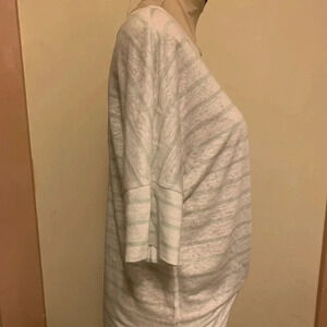 Nautical-inspired stripes make this tee an on-trend essential for the casual, warm-weather closet. Drop shoulder detailing and breathable linen create a relaxed fit. A straight hem in the front and shirttail hem in the back finish the effortless look with feminine refinement. 100% linen. Hand wash. Imported. Color: white/mint green.