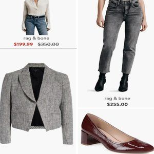Cute boucle tweed tailored Vince short blazer or jacket. Wear it over a black sheath dress. Think Rag & Bone, Frame, Mother t-shirt dress or with a tee and jeans. Add your fave ankle boots. Style ideas in the photos. Light Gray heathered tweed. Open draped front. Collared. Unstructured relaxed fit. Size S tts. NWT