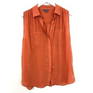 VINCE Orange Sleeveless Silk Button Down Collared Blouse Size M