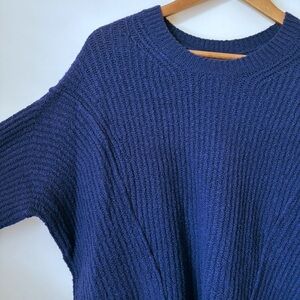 VINCE Overlap Panel Crewneck Sweater Medium Ink Blue