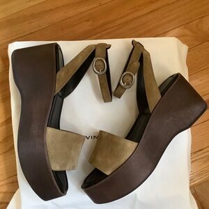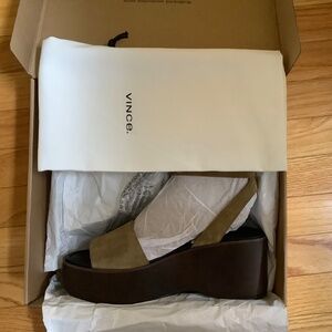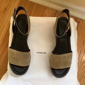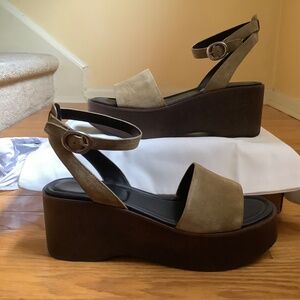 VINCE Phillipa Platform Suede Sandals Olive Wood SZ 9.5