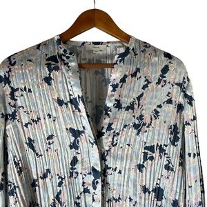 VINCE Pleated Tide Pool Lotus Print Button Down Blouse