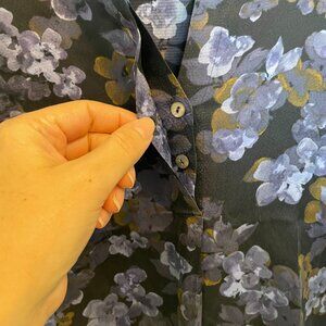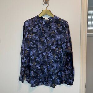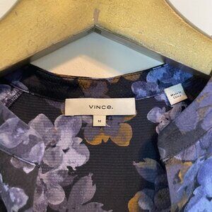 VINCE Plumeria Blooms Popover Silk Satin Floral Tunic Blouse \\ M