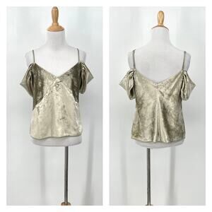 VINCE Poet Strap Slip Cami Women 10 Light Sage Green Velvet Off the Shoulder Top