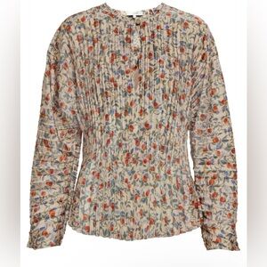 VINCE Pomegranate Pleated V-neck Blouse In Beige Size Large