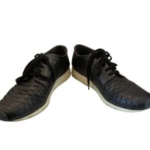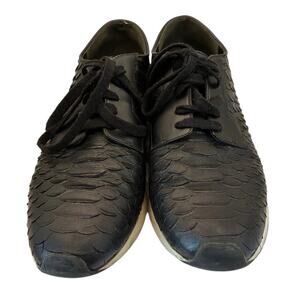 VINCE Rayner Leather Lace-Up Sneakers Snakeskin Embossed Luxe Black Size 10