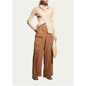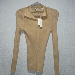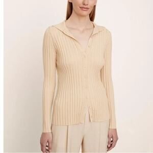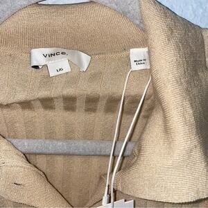 VINCE Ribbed Collared Polo Style Knit Fitted Cardigan Sweater Top L NWT