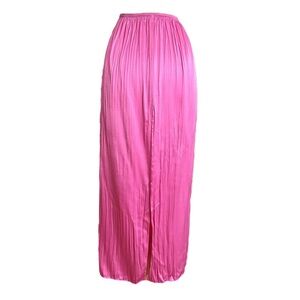 This stunning Vince pleated maxi skirt is constructed of a breathable viscose blend fabric in a vibrant purplish pink color. This skirt offers a luxe drape and eco-conscious fabric choice. It features an elastic waistband, midi-to-maxi length silhouette with back slit and is unlined. It is pull-on with a lightly pleated texture.