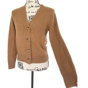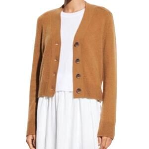 VINCE SHRUNKEN CASHMERE CARDIGAN CHESTNUT SZ M BUTTONED UP V NECK SOPHISTICATED