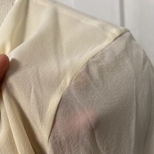 Vince brand size 6 silk long sleeve button down cream blouse. Has very small blemish on top of shoulder and the tiniest stain on bottom of top. Really overall barely used condition I think was worn once. So cute π₯°