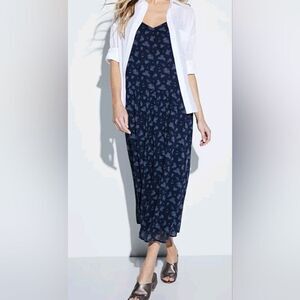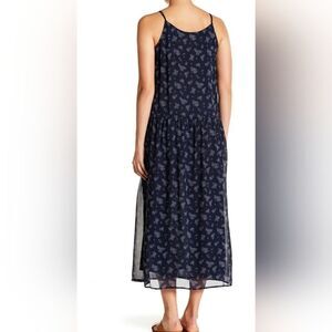 VINCE SP Coastal Navy Blue Calico Floral Print 100%SILK Cami Slip Midi Dress