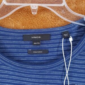 VINCE Shirt Mens XXL Blue Stripe Pullover Crew Short Sleeve Pima Cotton Tee $125