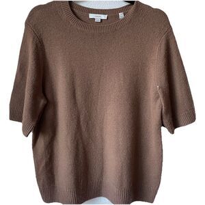 VINCE Short Sleeve Wool & Cashmere Sweater in Classic Brown Size XL