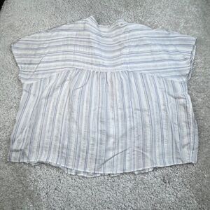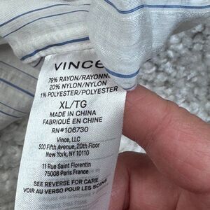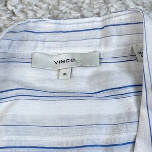 VINCE Short Sleeve Drapey Striped Blouse White Blue