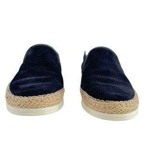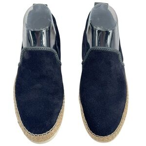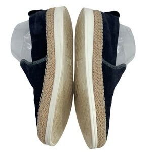 VINCE Silas Suede Slip On Sneakers Navy Blue Espadrille Jute Trim COMFY