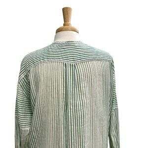 VINCE Silk Blend Split-Neck Stripe Tunic Blouse Green White size Medium