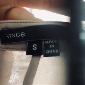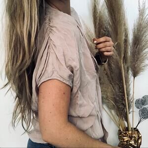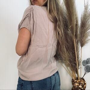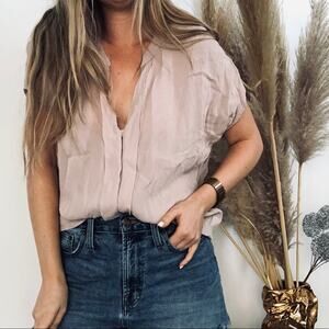 VINCE Silk Gathered Sleeve Button Blush Pink Cream Blouse VNeck Shirt Top Small