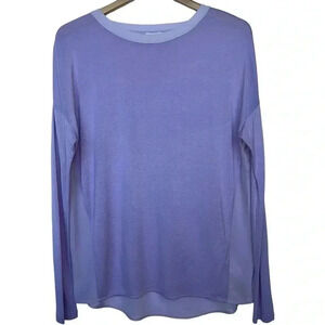 VINCE | Silk Mixed-Media Long-Sleeve Shirt | Lilac Waterlily | XS