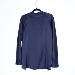 VINCE Silk Satin Band Collar Blouse Coastal Blue Long Sleeve Women's L