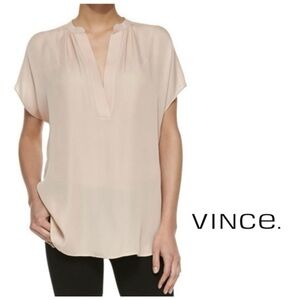 VINCE Silk Short Sleeve Popover Blouse (12)