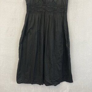 VINCE Smocked Black Sundress Womens Size 8 Lined Cotton V-Neck Empire Waist