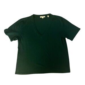 VINCE. Solid Kelly Green V-Neck Short Sleeve Linen Blend Women's Tee Size Large