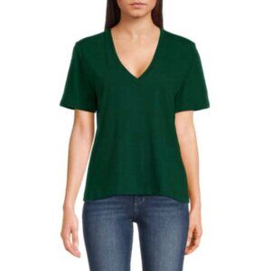Vince. Solid Kelly Green V-Neck Short Sleeve Linen Blend Women's Tee