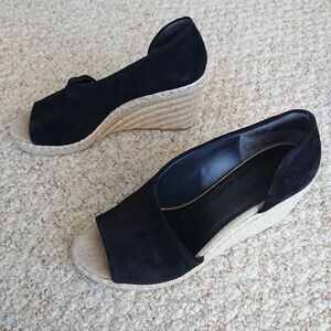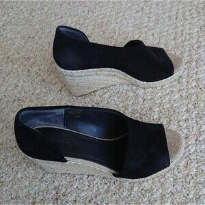 VINCE Sonora Black Suede D'orsay Jute Platform Wedge Sandal size 8.5 M