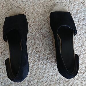 VINCE Sonora Black Suede D'orsay Jute Platform Wedge Espadrille Sandal size 8.5 M