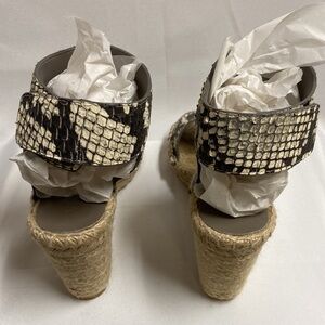 VINCE Sophie Snake Embossed Espadrille Ankle Strap Wedges