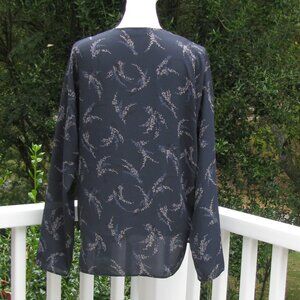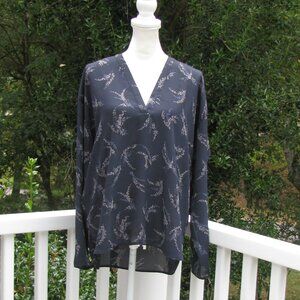 VINCE Sprig Floral print v neck top shirt blouse Large pullover luxury style