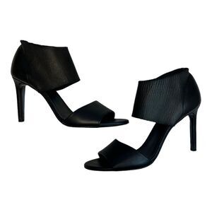 VINCE | Stephanie Black Leather Open Toe Heels 9