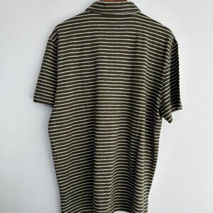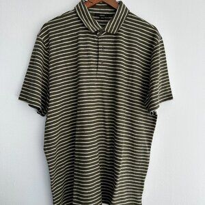 VINCE Stripe Cotton Slub Polo. Green with Grey stripes. XL. 100% cotton. NWT