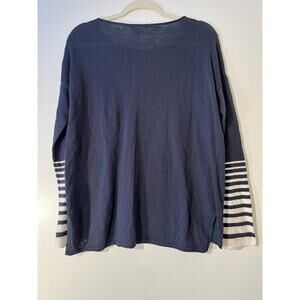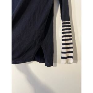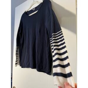 VINCE Stripe Sleeve Dolman Cotton Sweater Top Navy/White M