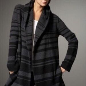 VINCE Striped Black Gray Open Cardigan Sweater Cashmere Wool Size XS S Oversized