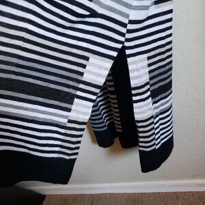 VINCE Striped Intarsia Open Front Longline Merino Wool Blend Duster Cardigan Sweater Black/Grey/White Size Women's XS
