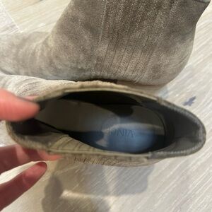 VINCE. Step out in style with these chic beige suede boots. Perfect for any occasion, they offer both comfort and style.